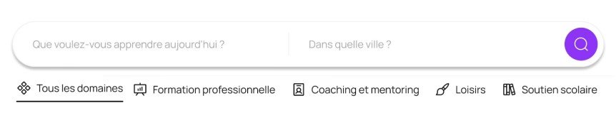 2. Choisissez le domaine de la formation recherchée : tous les domaines, formation pro, loisir, coaching, mentorat, soutien scolaire